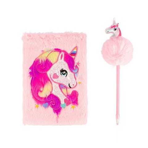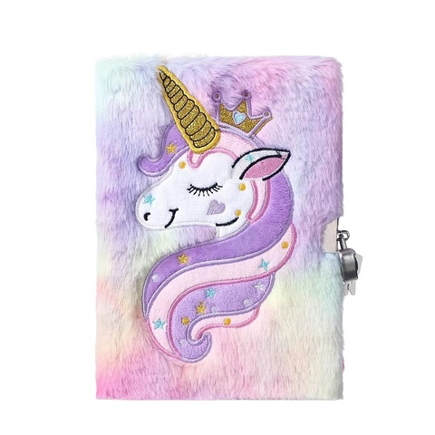 Skyward New A5 어린이 일기 잠금 만화 유니콘 플러시 커버 노트북 비즈니스 양장 저널 학교 어린 소녀 선물